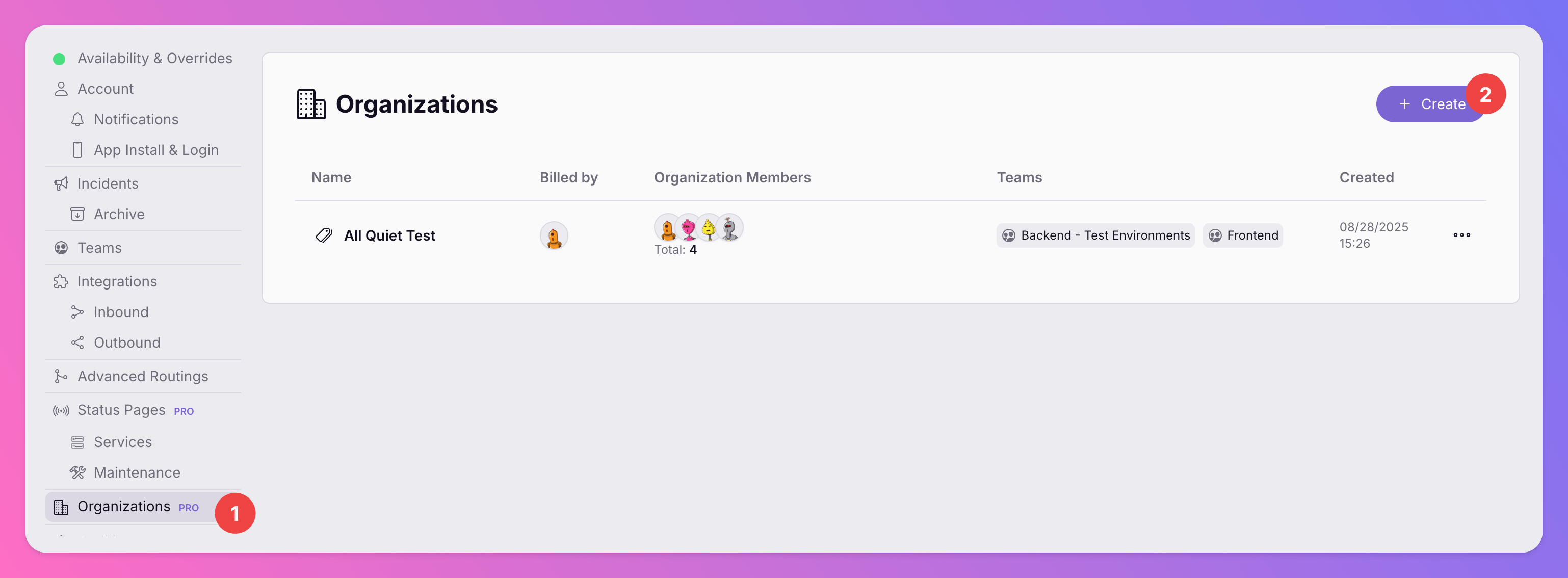 - Consider Your Needs: It is important to assess whether your current or anticipated team dynamics necessitate the advanced coordination capabilities that Organizations provide. E.g. organizations allow you to share one outbound integration amongst several teams. This allows you to send incidents from differenet teams within your org to the same slack channel, using the same integration.