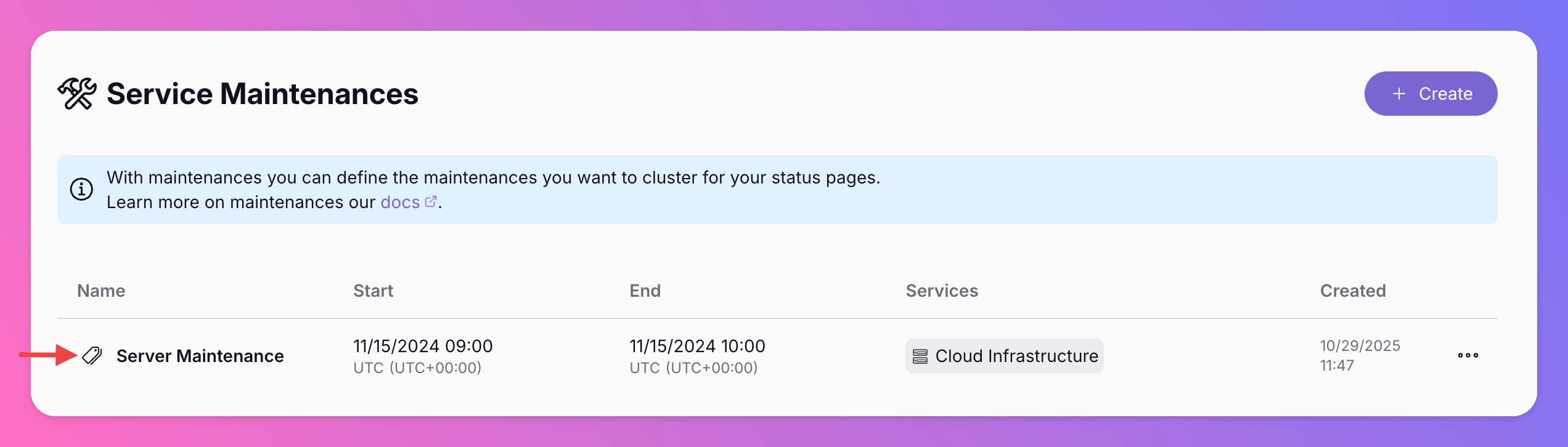 Maintenances are a necessity. To keep your customers in the loop, we’ve a added aMaintenance feature for status ages, allowing you to inform customers about plannend maintenances in advance, as well as keeping them in the loop during a maintenance.